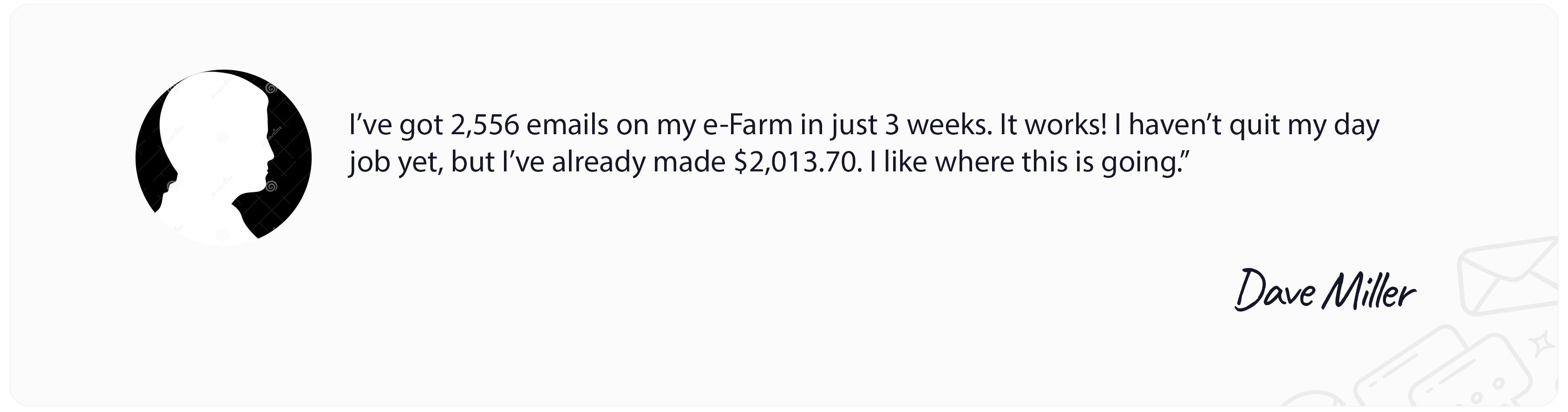 The more your e-Farm grows, the more it will make. Key to success in growing your e-Farm is being able to quickly and cheaply generate lots and lots of email addresses on autopilot. That’s exactly what I’m showing you inside. Plus, give you specific service providers to talk to to make it happen.