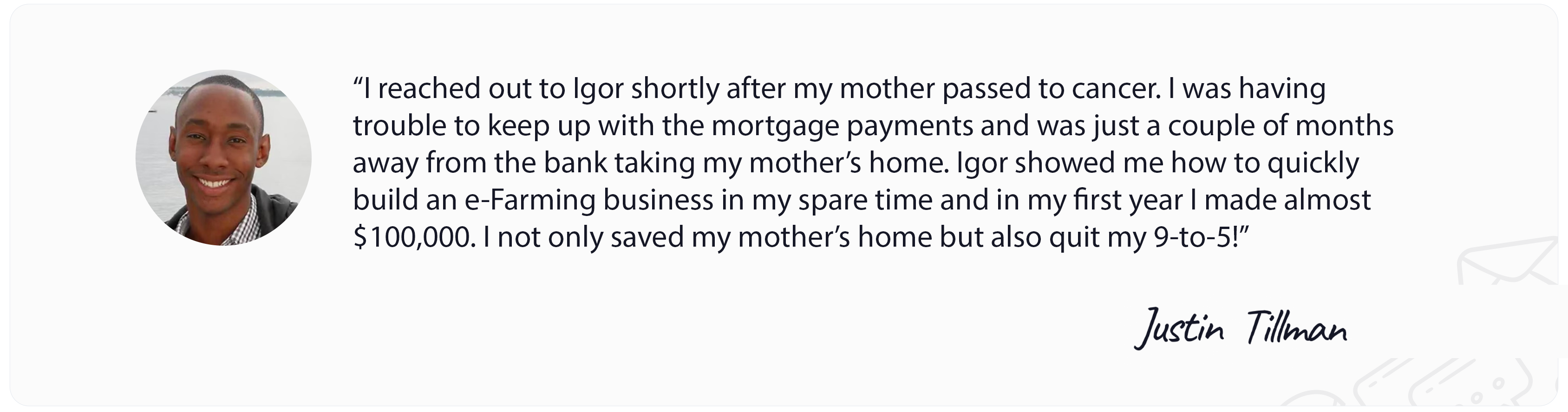 Igor has already helped thousands kickstart their own profitable e-Farming online business through his best-selling program The 30-Day e-Farming Challenge.